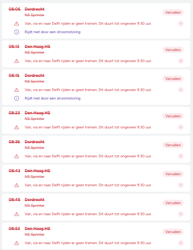 Vanochtend rond 07:15 is er een stroomstoring ontstaan op het stroomnet in Den Haag. Hierdoor is het treinverkeer ontregeld in en rond de Den Haag.