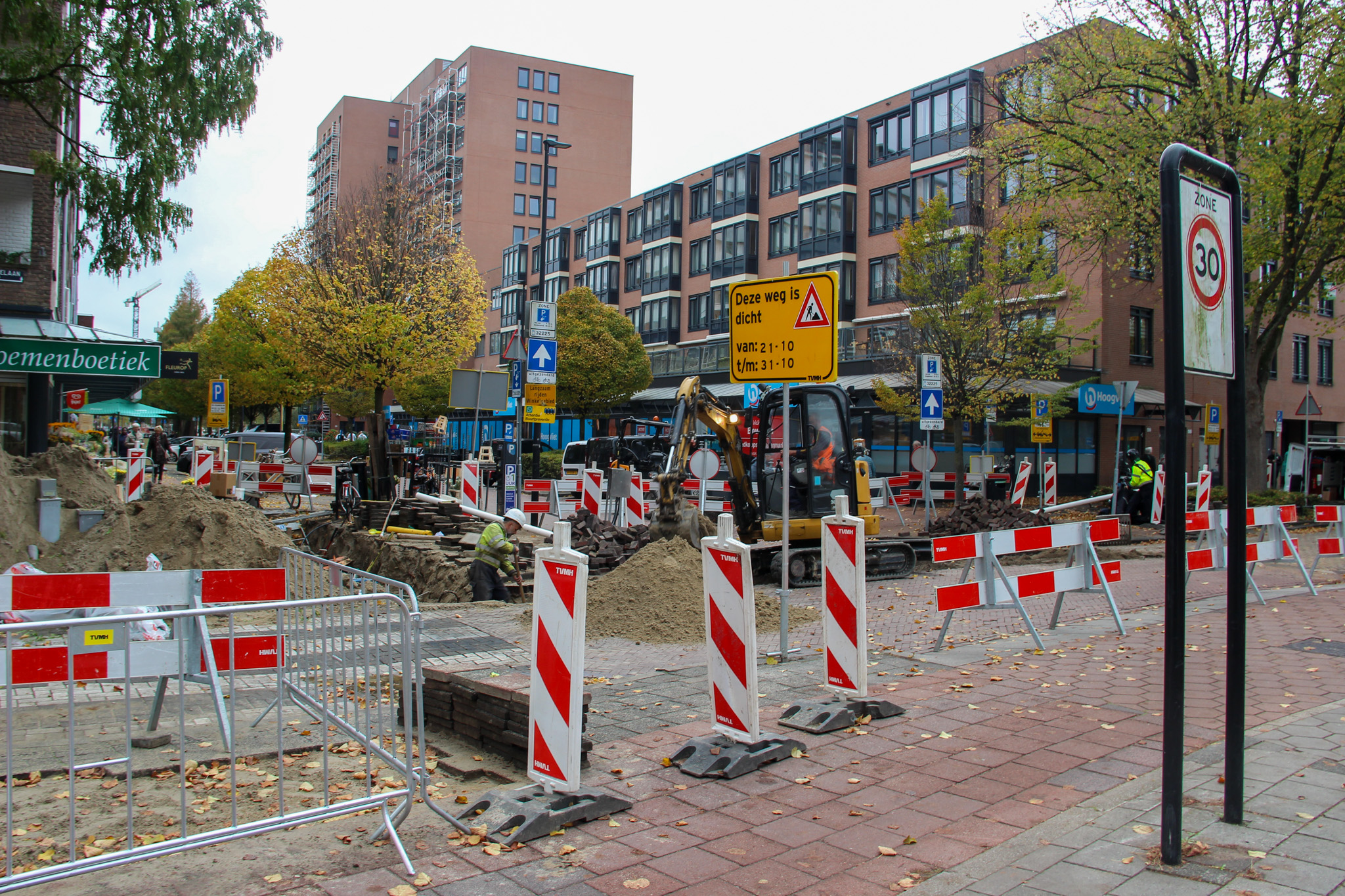 Er zijn omleidingsroutes ingesteld voor automobilisten. Fietsers en voetgangers kunnen in sommige gevallen nog wel langs de werkzaamheden.